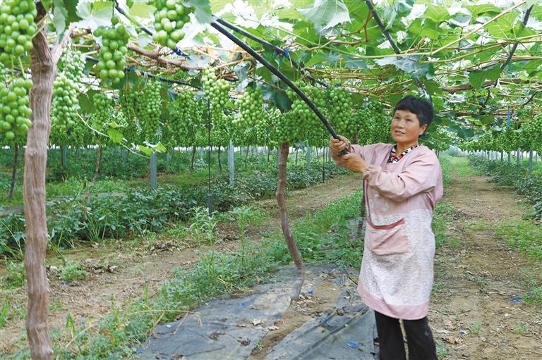 据悉,为了保住葡萄的玫瑰香,该公司主要从土壤改良、栽培设施、架形设计、控产提质等方面着手,施有机肥、建温棚,配套水肥一体喷灌系统,采用大冠稀植的葡萄架形,确保每串葡萄50粒至60粒,每串重量控制在0.9公斤至1.1公斤。