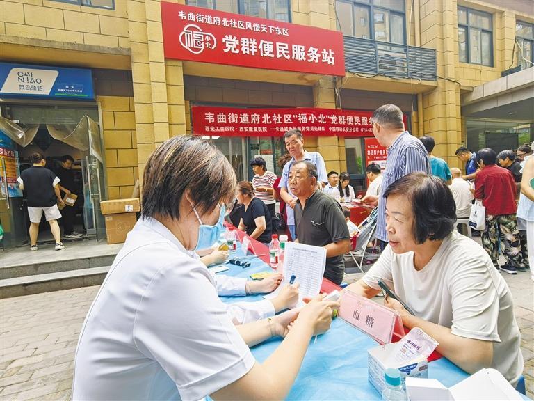 理发剪“咔咔”作响,测血糖、血压的老年人络绎不绝……6月27日,在西安市长安区,韦曲街道多家单位和机构爱心人士走进府北社区,在风憬天下小区东区的党群便民服务站开展便民活动,吸引不少群众参加。