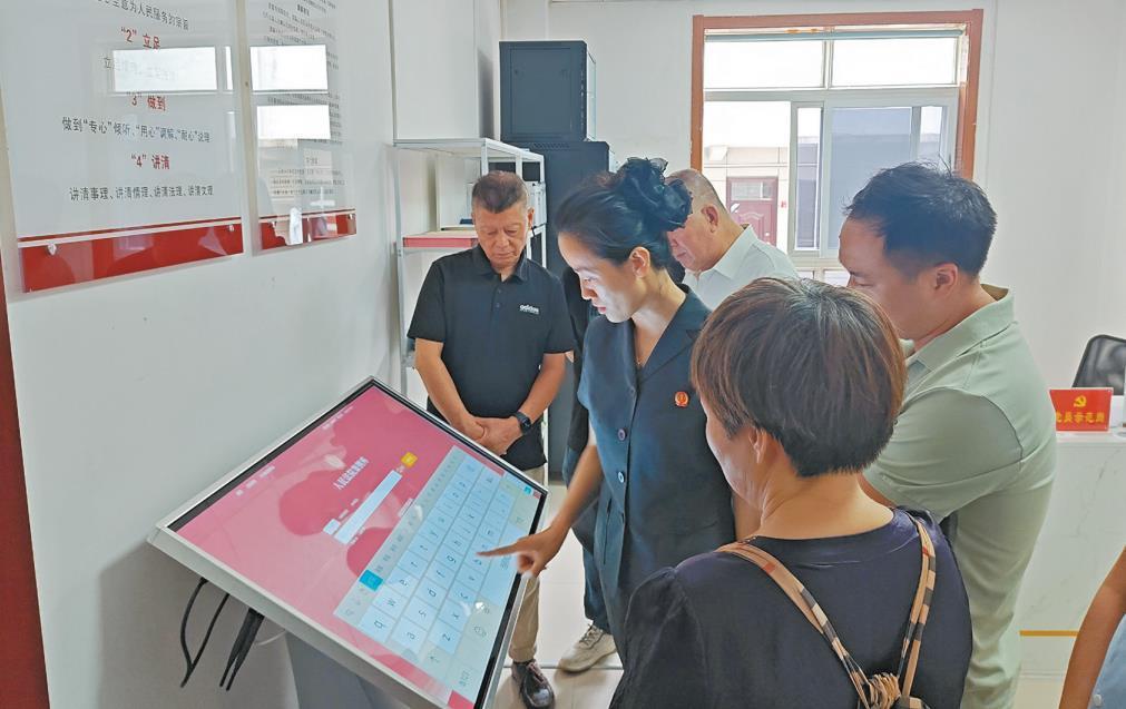 西安市未央区人民法院未央宫人民法庭法官利用“人民法院案例库一体机”向群众进行释法明理(资料照片)。