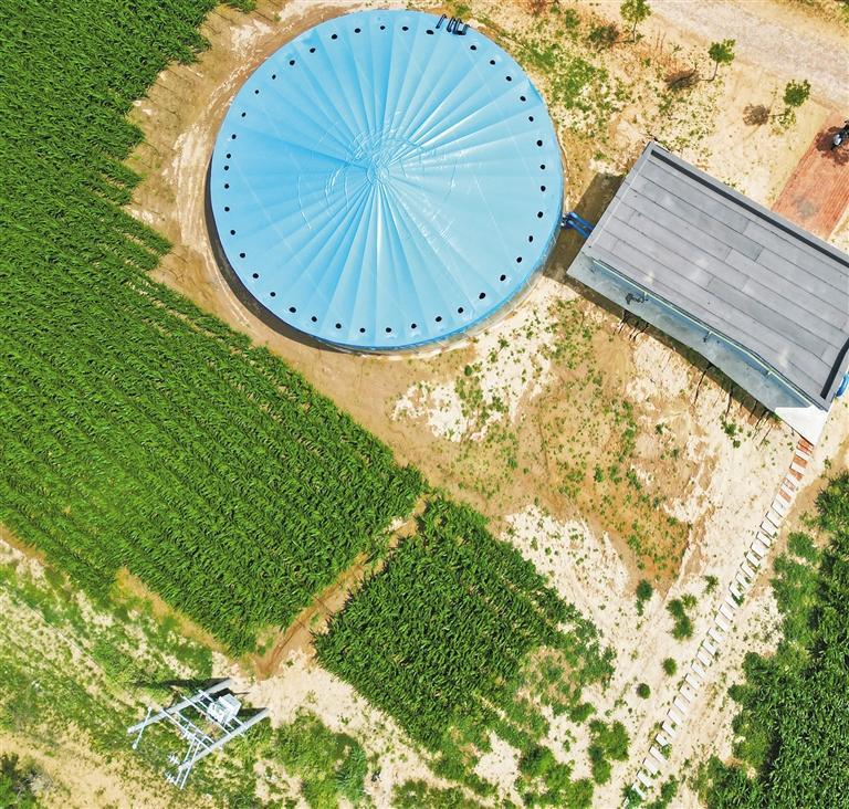 在北部风沙滩区,靖边县通过推广漫灌改滴灌、喷灌改滴灌,改造升级智能水肥一体化技术,降低单位面积耗水量实现灌溉节水。此外,在中部梁峁涧地区,靖边通过推广“四位一体”集雨补灌和软体集雨窖技术,充分利用地表水以增加灌溉面积。靖边县菜薯省级农村产业融合发展示范园便受益于此。