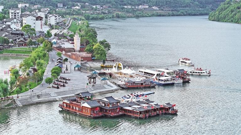 随着暑期到来,安康市石泉县旅游迎来旺季。图为7月5日,游客在石泉县后柳水乡乘坐游船欣赏汉江美景。 本报通讯员 许兵摄