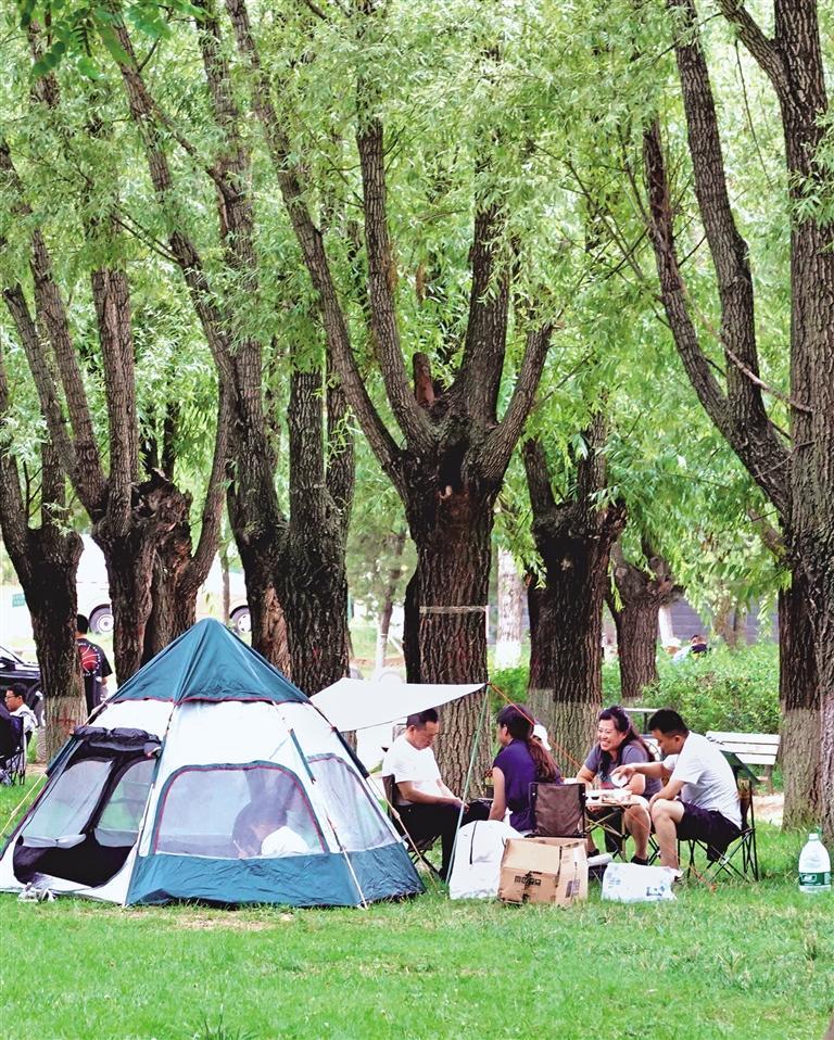 7月6日,延安市民在西北川公园露营,乐享夏日户外惬意时光。 本报通讯员 王德荣摄