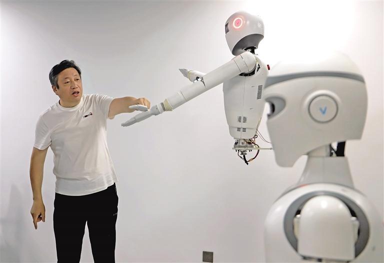 边旭:大力发展人形机器人离不开企业这个重要载体,要依托高素质人才队伍的储备、学校科研创新能力的支撑,以及产学研深度融合模式的助力,让企业的人形机器人产品快速从实验室“走”向市场。