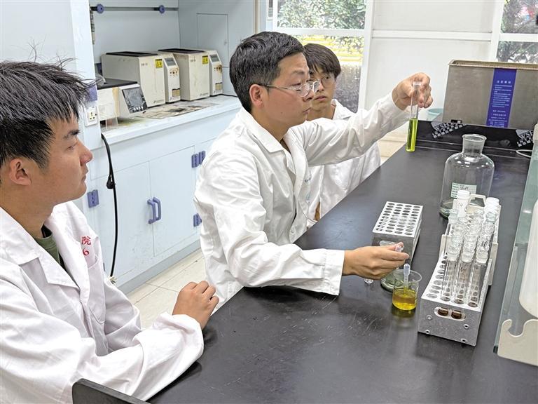 7月11日,安康市富硒产品研发中心农艺师杜小平在教学生检测植物中的硒含量。 本报记者 李欣泽摄