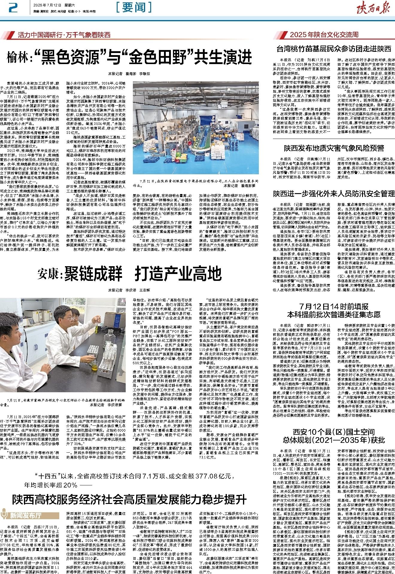 本报讯 (记者 刘枫)7月6日至11日,作为2025陕台文化交流周系列活动之一,台湾桃竹苗基层民众参访团走进陕西。