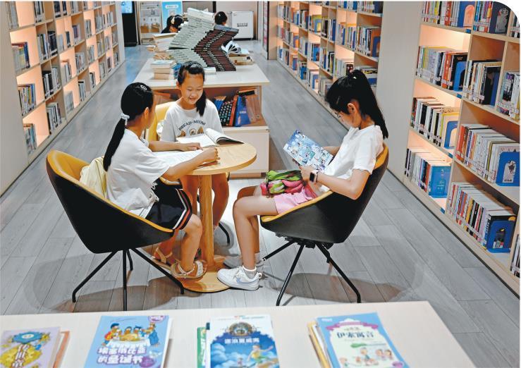 暑假期间,不少学生走进图书馆,选择自己喜爱的读物。图为七月十一日,孩子们在延长县槐里坪的宜兴·延长友谊书房阅读。 本报通讯员 王德荣摄