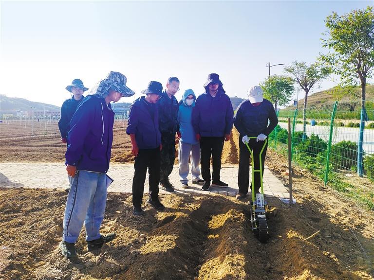 驻陕西米脂小米科技小院的西北农林科技大学学生在航天育种基地试验田播种(资料照片)。 受访者供图
