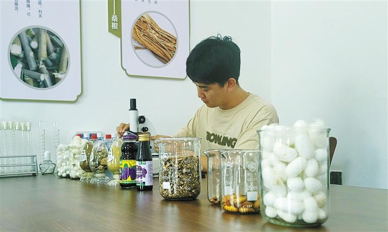 陕西汉滨蚕桑科技小院首席专家、西北农林科技大学副教授张二磊介绍:“我们重点推动蚕桑资源高值化利用,比如研发桑枝叶提取物、桑黄菌茶等功能性产品,提升产业附加值。同时,结合信息工程技术,开发了基于高光谱影像蚕茧质量无损检测模型,助力高品位生丝生产。”