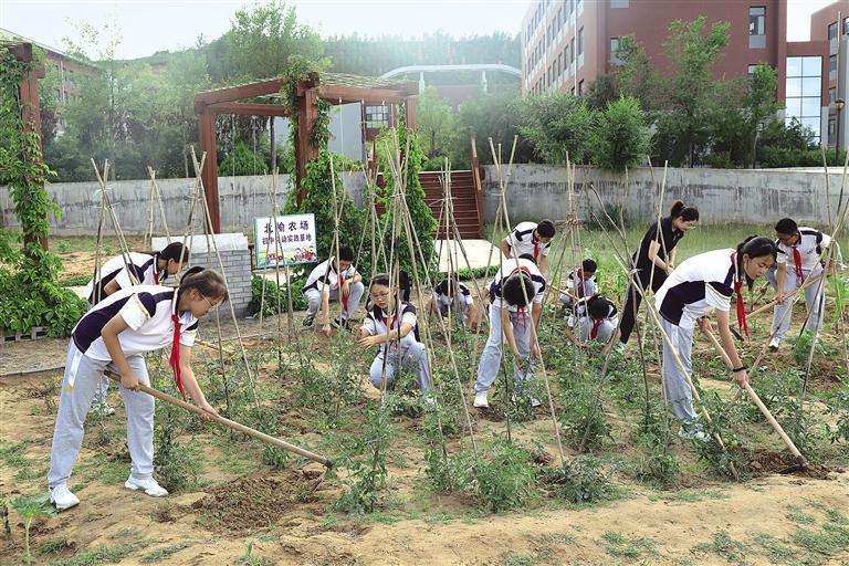 “‘校园农场’是学校德育课程中的一部分。通过培育一粒种子、观察一棵苗,我们希望孩子们能与自然对话,在劳动实践中学习知识、增长技能,全面发展。”北京师范大学榆林实验学校执行校长白金龙说。