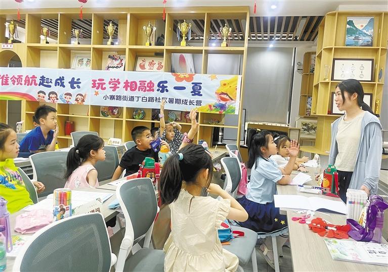 丁白路社区整合社区、学校、企业等多方资源,推出了公益暑托服务,打造涵盖课业辅导、非遗体验、生活技能、科学探索等系列课程的青少年成长“第二课堂”。