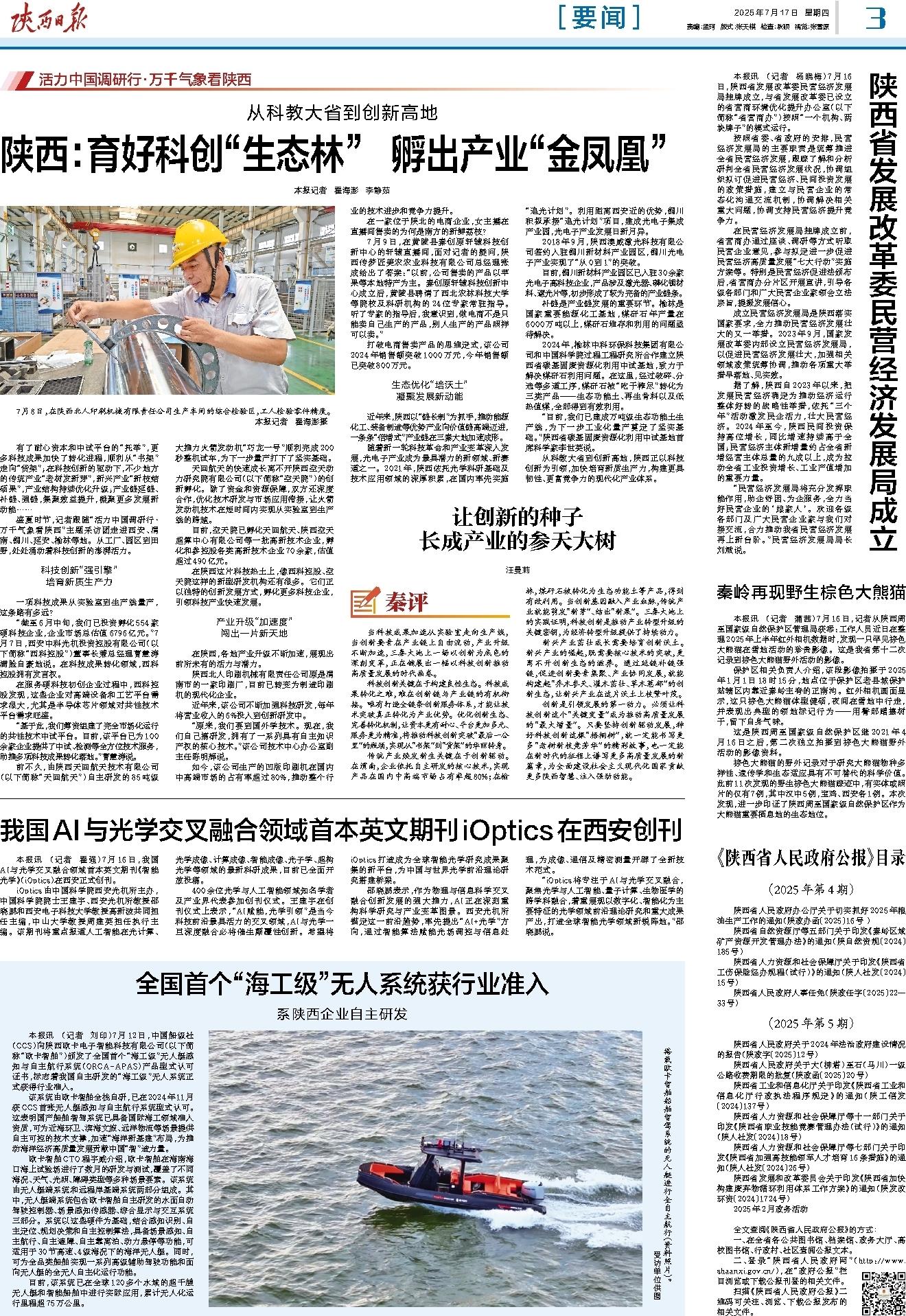据了解,陕西自2023年以来,把发展民营经济确定为推动经济运行整体好转的战略性举措,依托“三个年”活动激发民企活力,壮大民营经济。2024年至今,陕西民间投资保持高位增长,同比增速持续高于全国;民营经济主体新增量约占全省新增经营主体总量的九成以上,成为拉动全省工业投资增长、工业产值增加的重要力量。