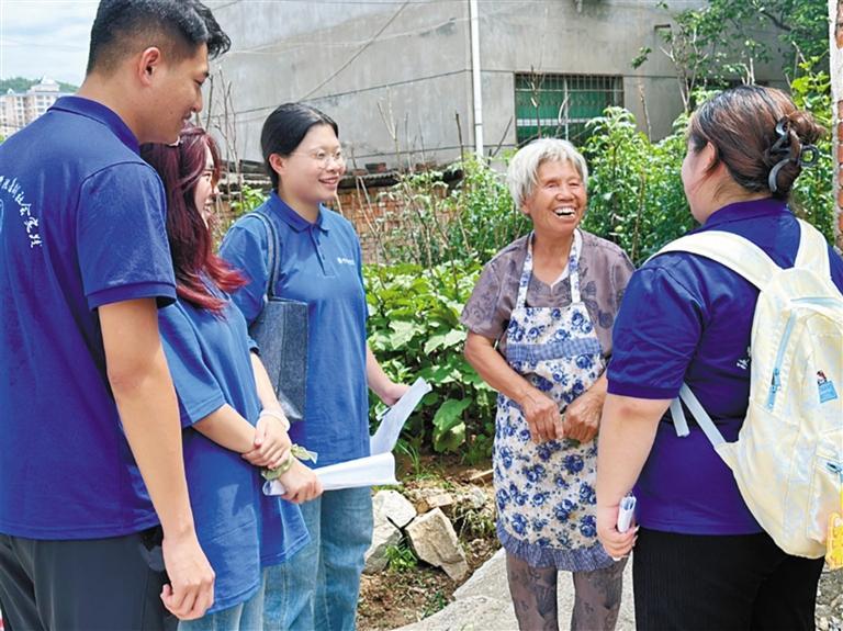 7月7日,陕西国际商贸学院暑期大学生社会实践队在商洛市商州区刘湾街道元明社区开展宣传、走访等活动。 共青团商洛市委供图