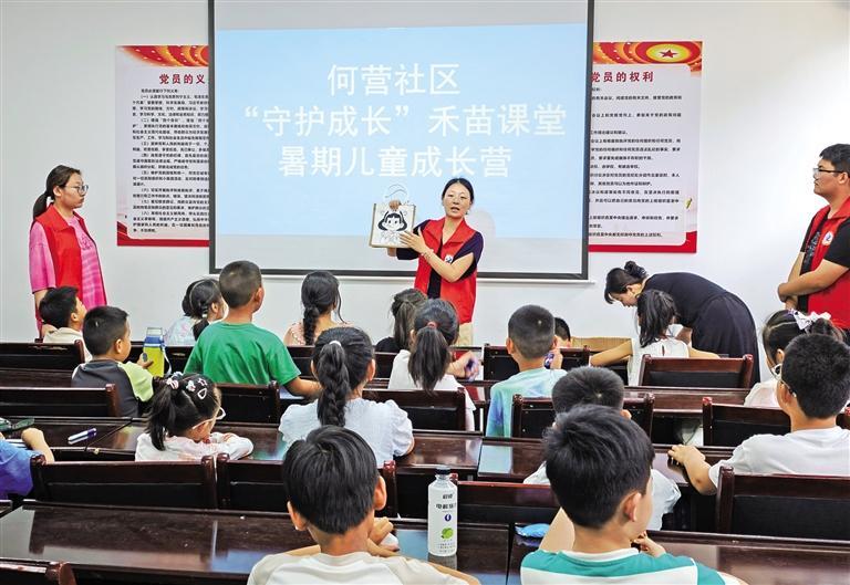 七月十一日,勉县勉阳街道何营社区根据区域党建联盟“需求清单”,组织志愿者为儿童开展知识讲座。 本报通讯员 陈林摄
