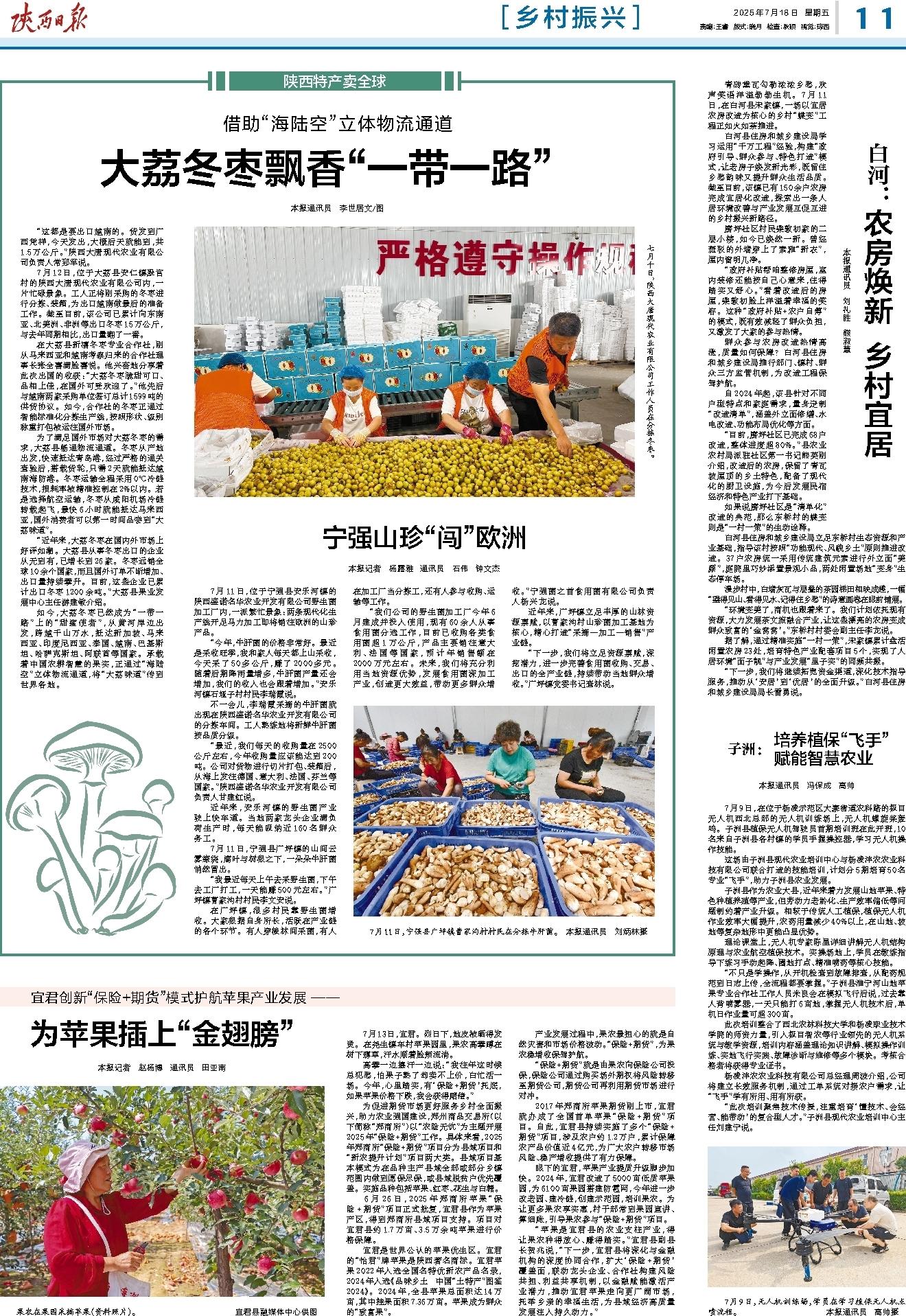 在大荔县新禧冬枣专业合作社,刚从马来西亚和越南考察归来的合作社理事长张全喜满脸喜悦。他兴奋地分享着此次出国的收获:“大荔冬枣脆甜可口、品相上佳,在国外可受欢迎了。”他先后与越南两家采购单位签订总计1599吨的供货协议。如今,合作社的冬枣正通过智能标准化分拣生产线,按照形状、级别称重打包被运往国外市场。