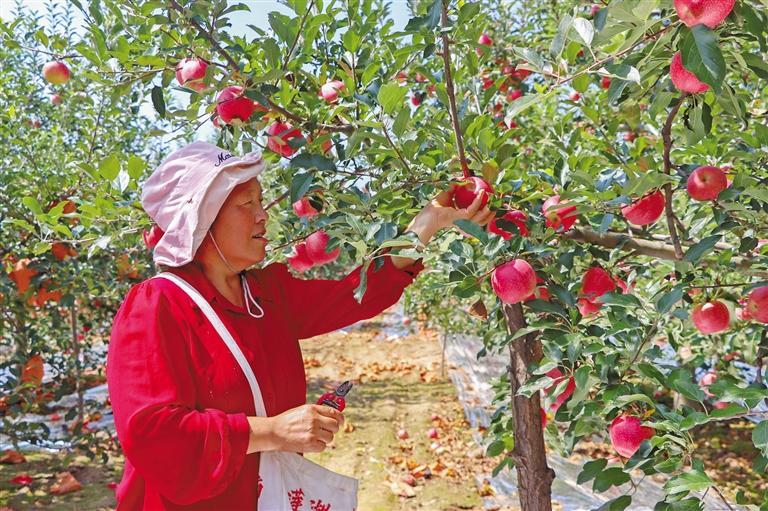 果农在果园采摘苹果(资料照片)。 宜君县融媒体中心供图