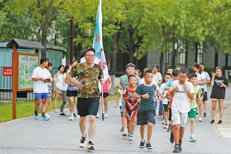 7月15日,丁小建带着跑团的孩子进行暑期跑步锻炼。