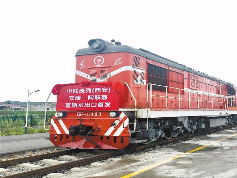7月18日,一列满载安康富硒水的铁海联运专列从中国铁路西安局集团有限公司恒口铁路货场启程。 本报记者 齐珂雨摄