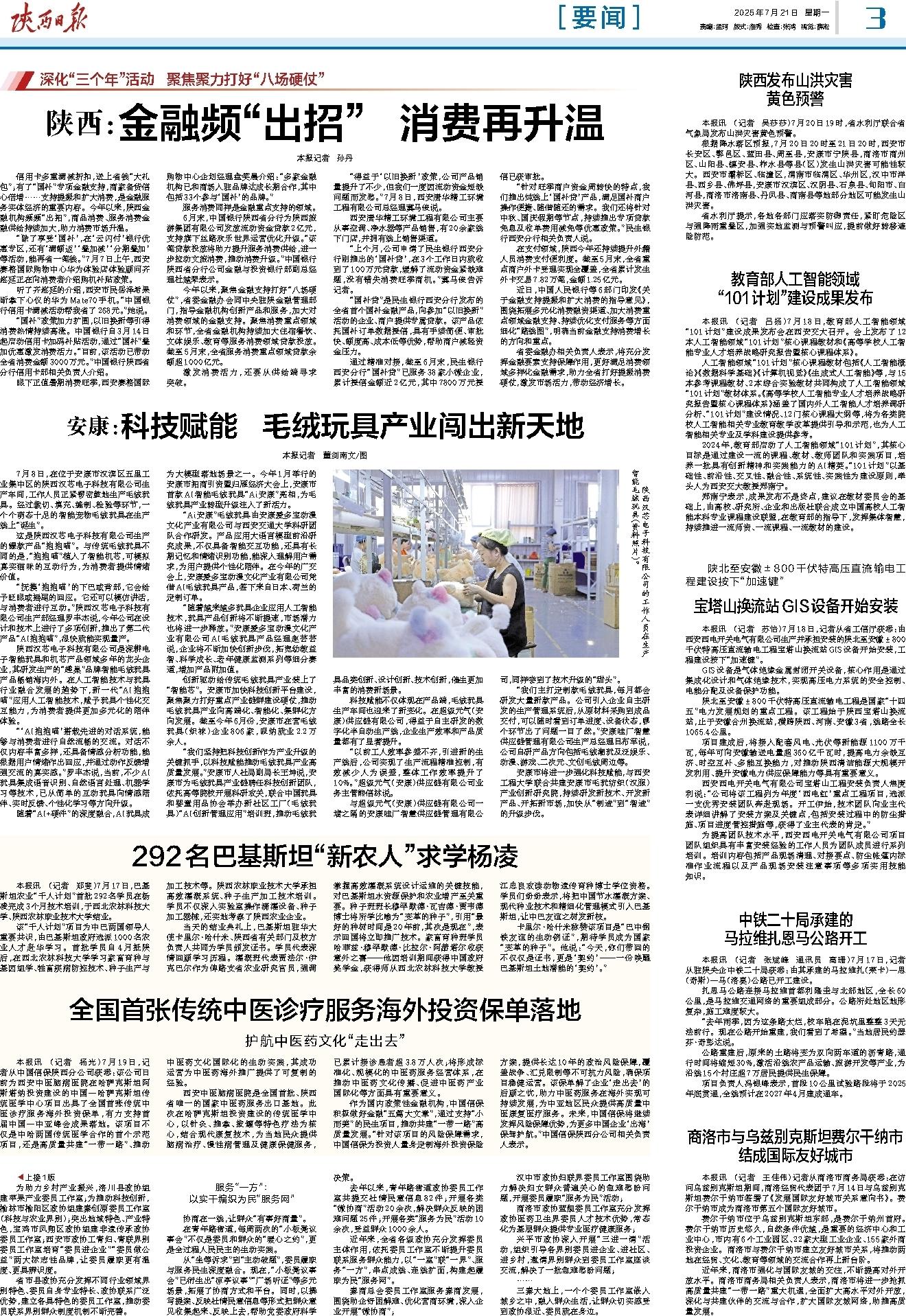 本报讯 (记者 杨光)7月19日,记者从中国信保陕西分公司获悉:该公司日前为西安中医脑病医院在哈萨克斯坦阿斯塔纳投资建设的中国—哈萨克斯坦传统医学中心项目出具了全国首张传统中医诊疗服务海外投资保单,有力支持首届中国—中亚峰会成果落地。该项目不仅是中哈两国传统医学合作的首个示范项目,还是高质量共建“一带一路”、推动中医药文化国际化的生动实践,其成功运营为中医药海外推广提供了可复制的经验。