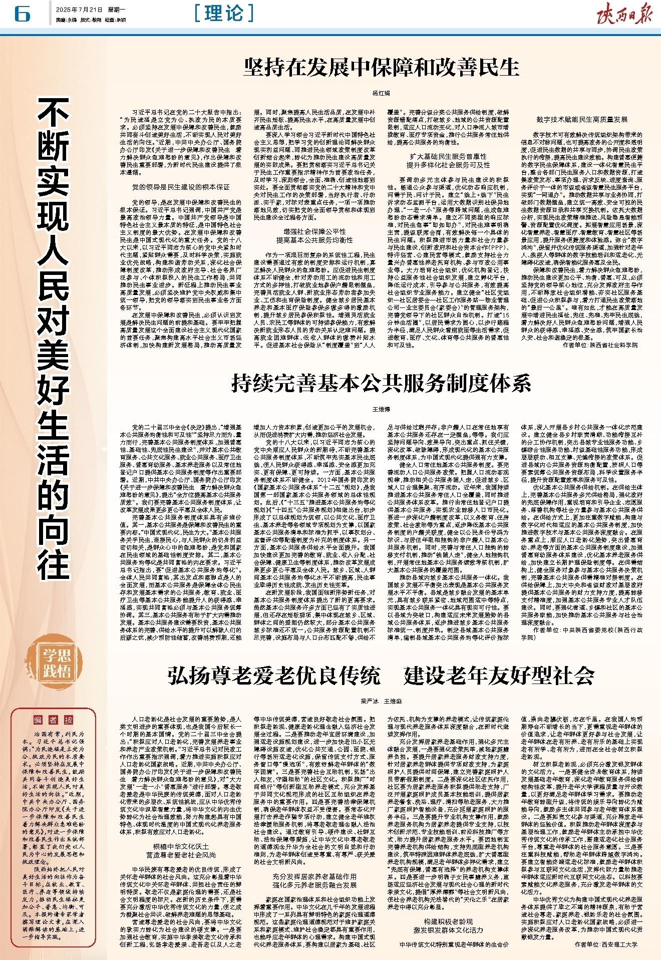 中华民族有尊老爱老的优良传统,形成了关怀老年群体的社会风尚。这充分彰显着中华传统文化中关怀老年群体、共担社会责任的鲜明特质。敬老不仅是家庭伦理的需要,还是社会文明程度的标尺。在新的历史条件下,更需要充分激活中华优秀传统文化的力量,使之成为凝聚社会共识、破解养老难题的思想基础。