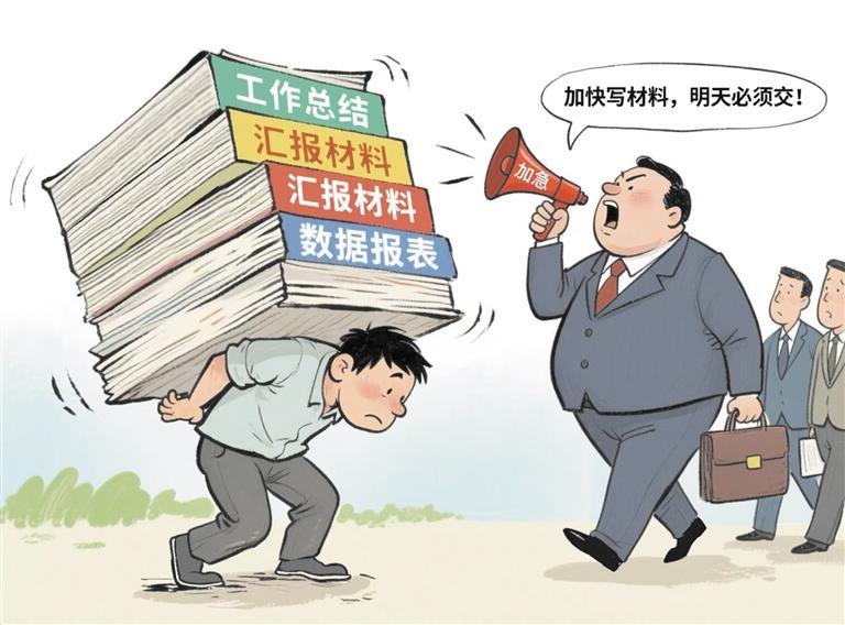 在基层,不少干部被材料压得喘不过气。迎接检查前,办公室里通宵达旦“造”材料的场景屡见不鲜。