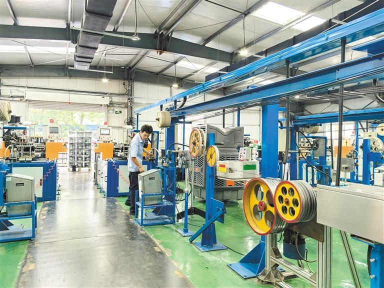 7月25日,在西安西古光通信有限公司光缆制造车间,工人在查看设备运行情况。 本报记者 田若楠摄