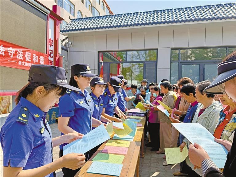 6月22日,榆林市城市管理综合执法支队工作人员在崇文路街道学院社区新时代文明实践站开展城市管理知识宣传(资料照片)。