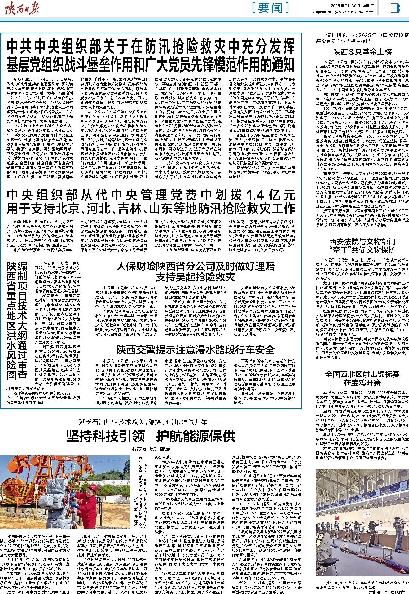 本报讯 (记者 吴莎莎)7月23日,记者从省水利厅获悉:省水旱灾害防御中心日前完成对陕西省2025年度重点地区洪水风险图编制项目技术大纲的审查,标志着该项目全面进入实施阶段。