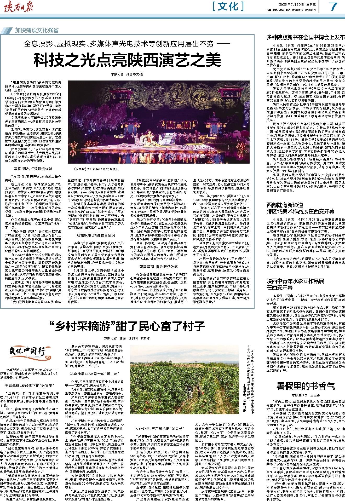 《长恨歌》《驼铃传奇》《复活的军团》《再回延安》等文旅演艺长演不衰;《白鹿原》《柳青》《主角》等思想深邃的舞台剧力作在全国数轮巡演,赢得广泛赞誉;借助“游陕西”平台的AI伴游助手,游客能轻松获得精准高效的专属路线……