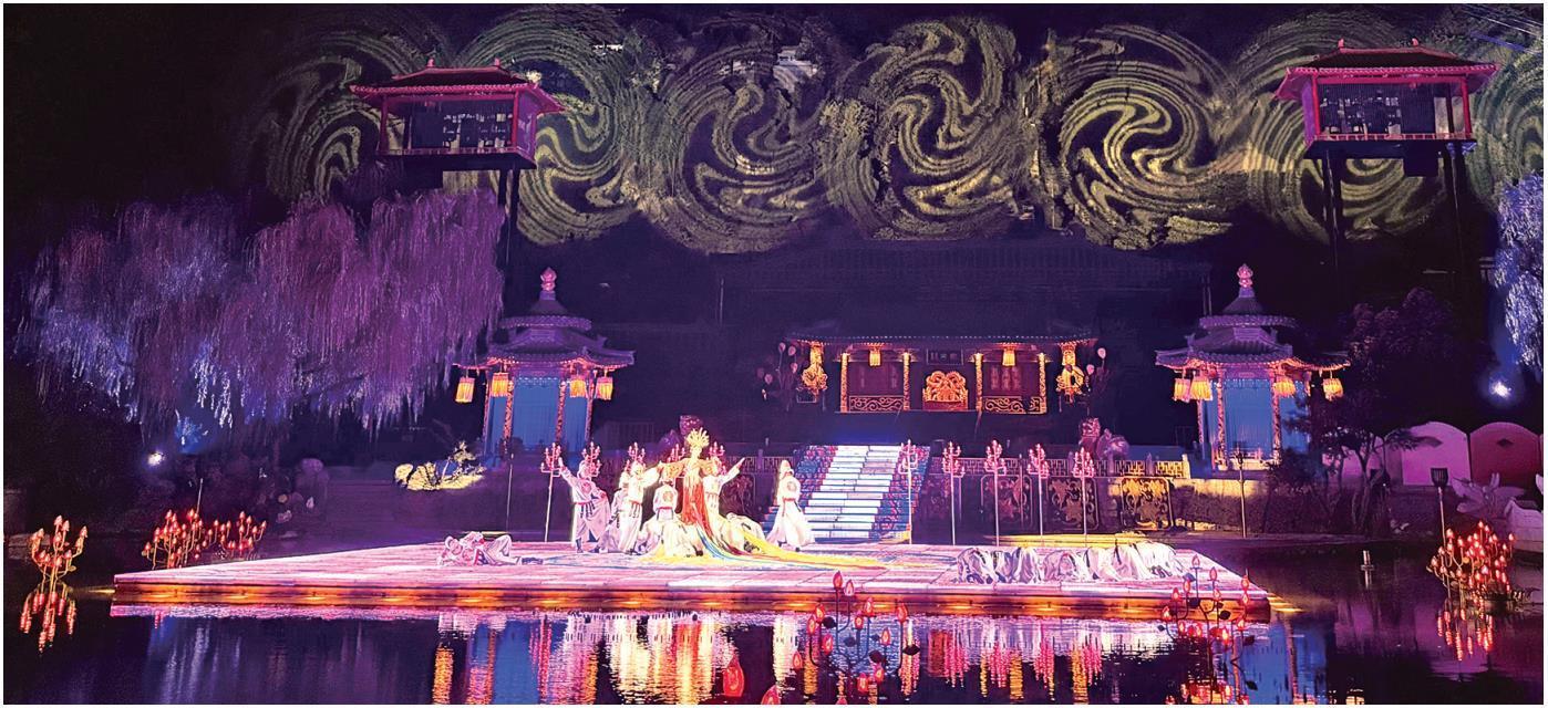 “我们已拥有隐蔽式折叠LED屏、山体星空特效、水下升降舞台等31项专利技术。”张星介绍,“去年,我们引入了全息投影与裸眼3D技术,打造‘祥云绕蓬莱’的仙宫幻境。今年,还将引入全景声技术,让观众全方位感受恢宏历史场景与剧中人细腻的情感变化,获得更极致的沉浸式体验。”