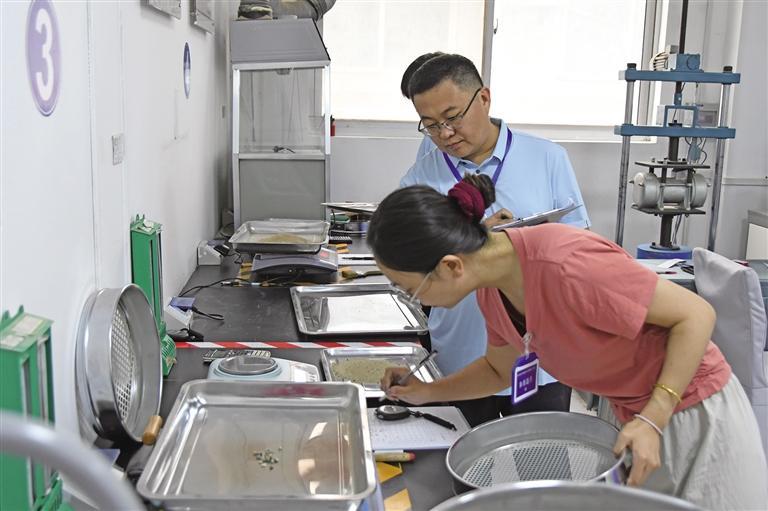 “理论竞赛采用计算机闭卷考试形式,内容涵盖专业理论、时事政治、安全常识等。实操竞赛采用现场实地公开考试形式,选手围绕砂的颗粒级配试验、粉煤灰需水量比试验、土的界限含水率试验3个项目展开比拼。”裁判员伍勇华介绍,此次技能大赛采取双盲选方式进行执裁,所有裁判均进行了赛前培训,统一了判罚标准,严格遵守执裁纪律和保密规定,确保比赛结果公正公平。