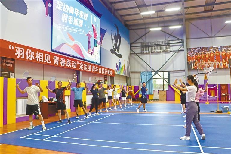 7月27日19时,在共青团定边县委开设的青年夜校羽毛球课上,球网两侧身影跃动,白色的羽毛球在空中划出一道道弧线。