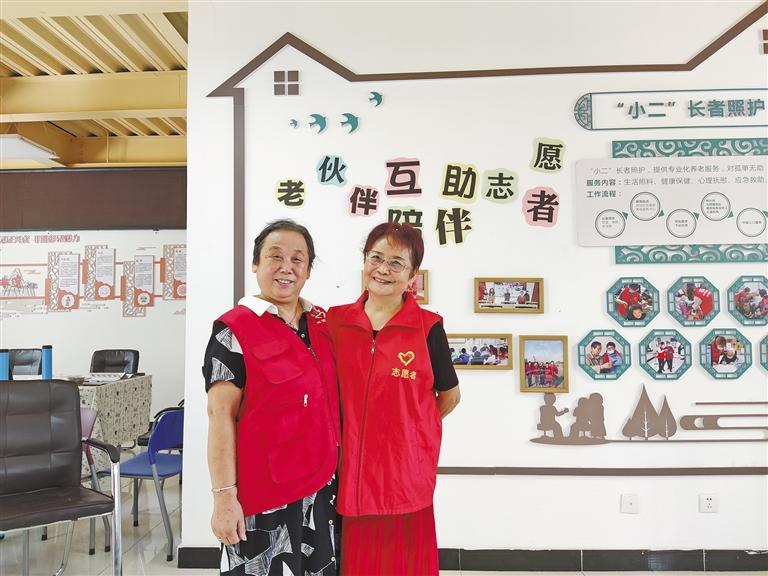 西安市莲湖区西仪社区的“老伙伴”志愿服务队积极参与志愿服务。图为志愿服务队骨干成员杜光彩(右)和冯玉玲。