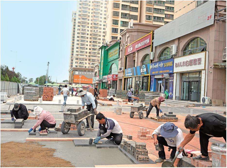 “丹霞红与礁岩青的陶砖拼起来真好看。”8月1日,路过长城路施工段的市民罗玉香忍不住驻足,看工人将破损的路面修平整。