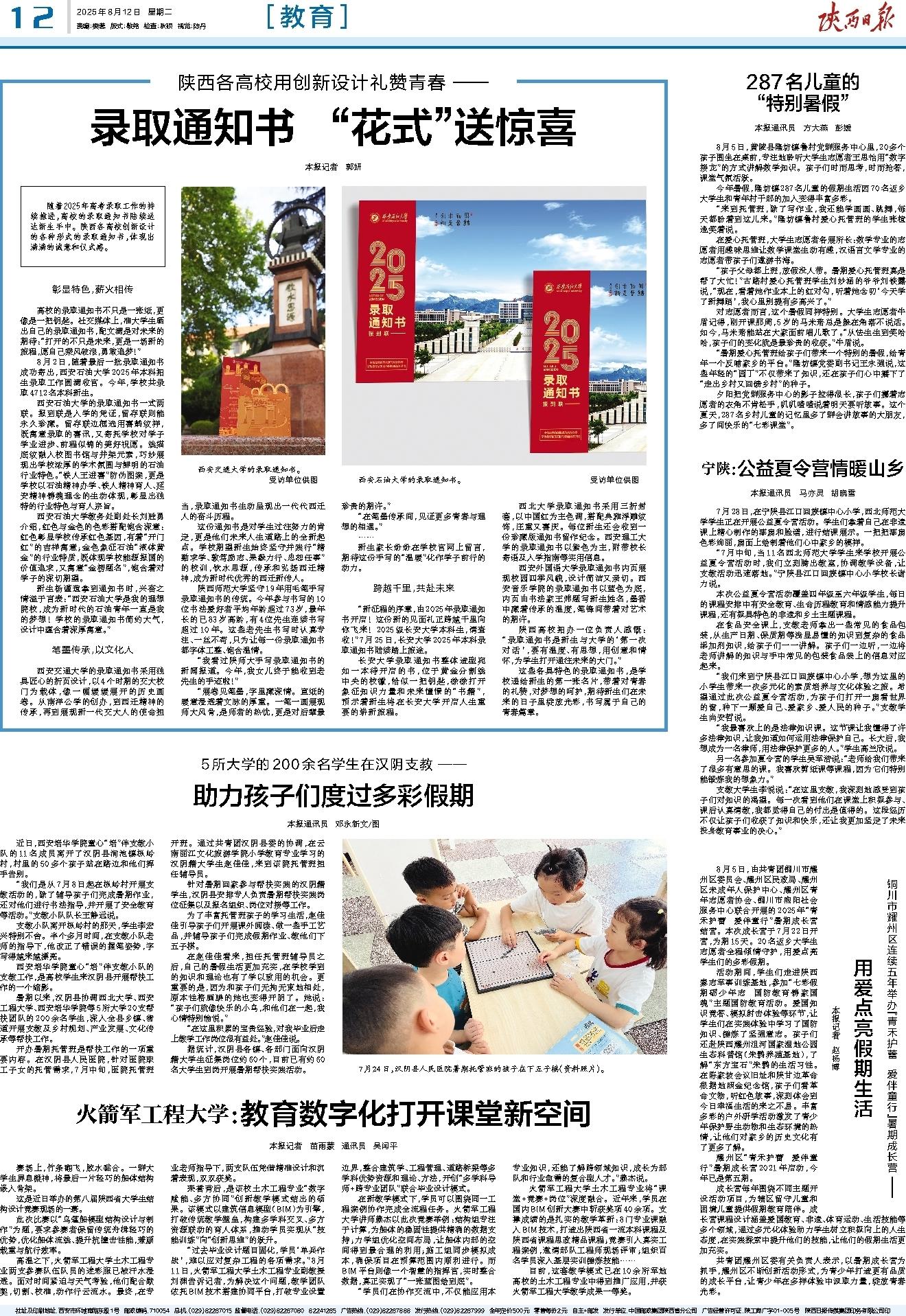 随着2025年高考录取工作的持续推进,高校的录取通知书陆续送达新生手中。陕西各高校创新设计的各种形式的录取通知书,体现出满满的诚意和仪式感。