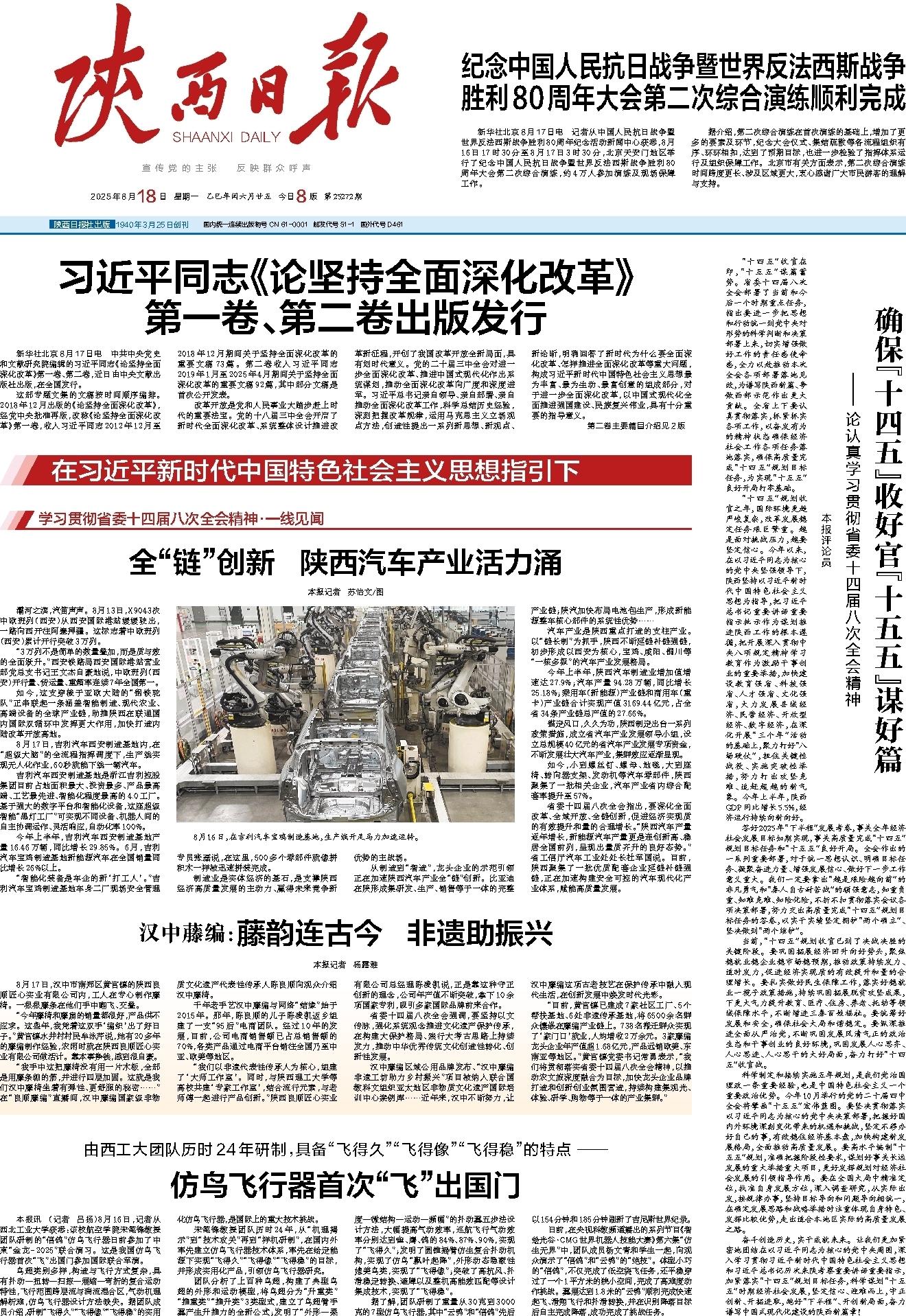 “十四五”规划收官之年,国际环境更趋严峻复杂,改革发展稳定任务艰巨繁重。越是面对挑战压力,越要坚定信心。今年以来,在以习近平同志为核心的党中央坚强领导下,陕西坚持以习近平新时代中国特色社会主义思想为指导,把习近平总书记重要讲话重要指示批示作为谋划推进陕西工作的根本遵循,把开展深入贯彻中央八项规定精神学习教育作为激励干事创业的重要举措,加快建设教育强省、科技强省、人才强省、文化强省,大力发展县域经济、民营经济、开放型经济、数字经济,在深化开展“三个年”活动的基础上,聚力打好“八场硬仗”,扭住关键性战役、实施突破性举措,努力打出攻坚克难、追赶超越的新气象。今年上半年,陕西GDP同比增长5.5%,经济运行持续向新向好。