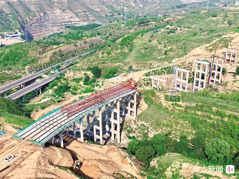 日前,在佳县东方红大道工程施工现场,吊机吊运桥板精准落位,工人迅速固定、焊接,桥身一段段向前延展。德通建设集团有限公司佳县东方红大道工程项目经理马斌介绍:“现已完成路基工程和桥梁下部的全部工作,桥梁工程目前正在进行梁板架设,预计年底前全部完成。”