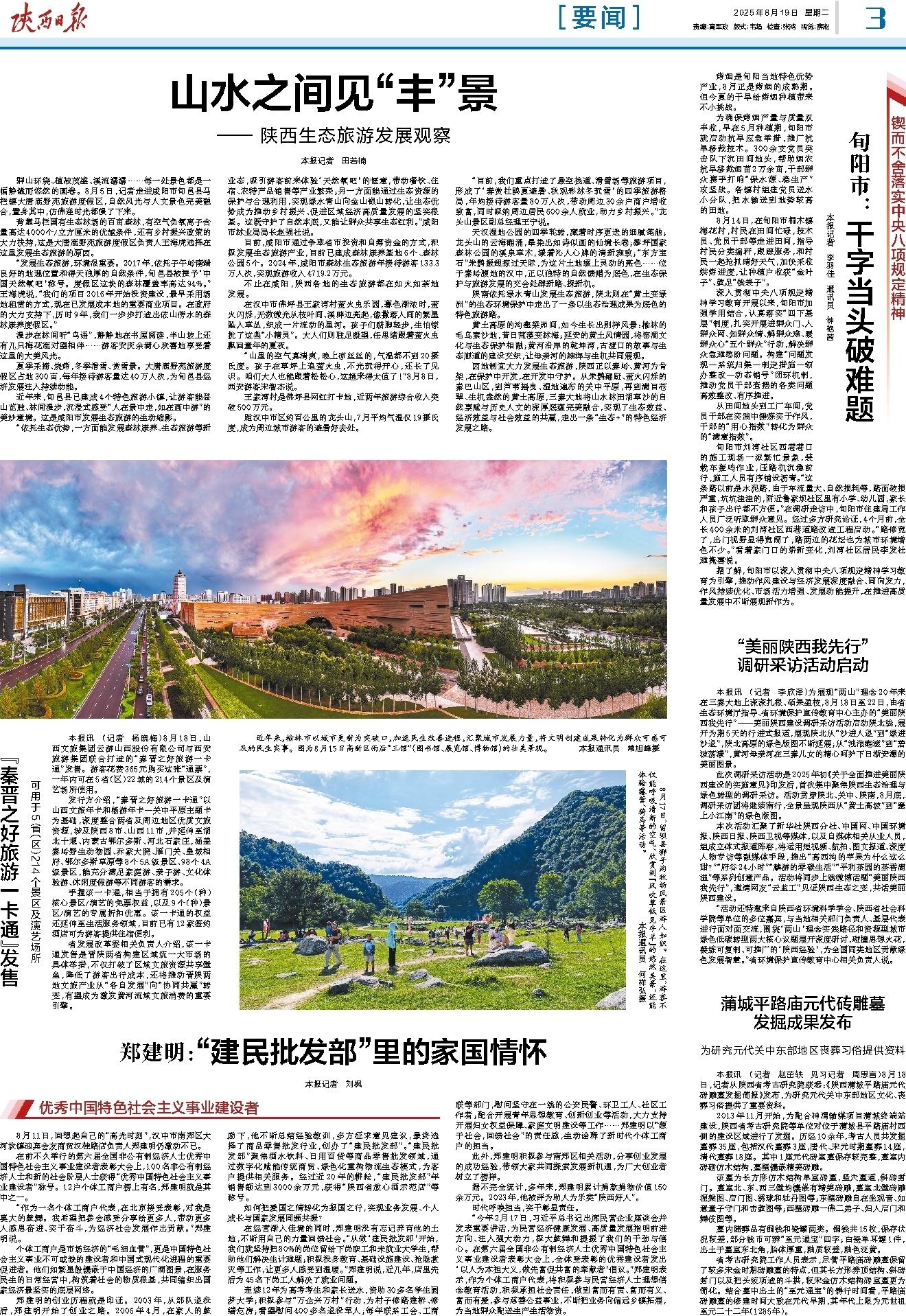 近年来,旬邑县已建成4个特色旅游小镇,让游客能登山览胜、林间漫步,沉浸式感受“人在景中走,如在画中游”的美妙意境。这是咸阳市发展生态旅游的生动缩影。