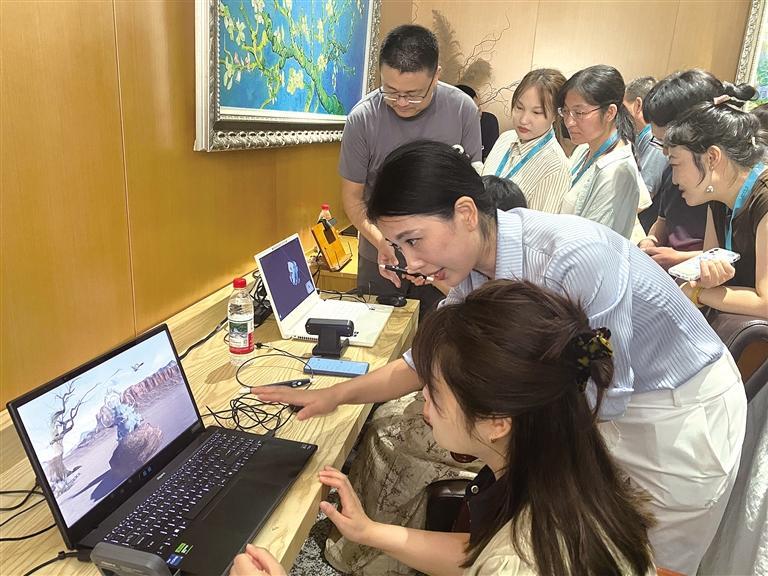 8月8日,2025古籍数字化与活化利用经验交流活动上,裸眼3D增强阅读项目吸引与会人员争相体验。