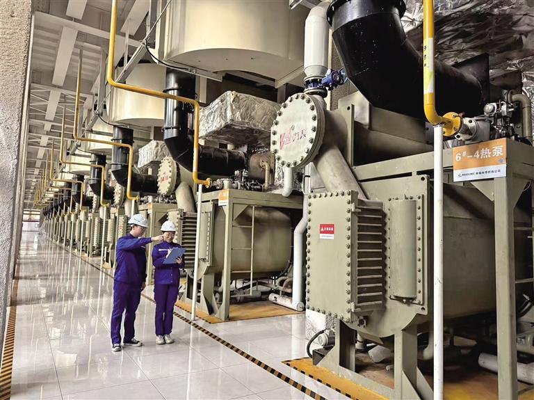 8月13日,幸福林带供热站内,工作人员在巡检设备。 受访单位供图