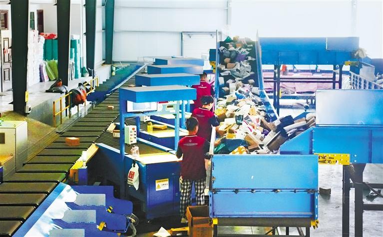城乡联合让共富之路畅通起来。在杏林镇龙山村时通物流集散中心,货运车、快递车往来穿梭,工人忙着分拣包裹。“我们盘活闲置土地建成物流集散中心。该中心今年4月投入使用,快递业务涵盖华州区10个镇(街道)。”龙山村驻村第一书记叶振川介绍。