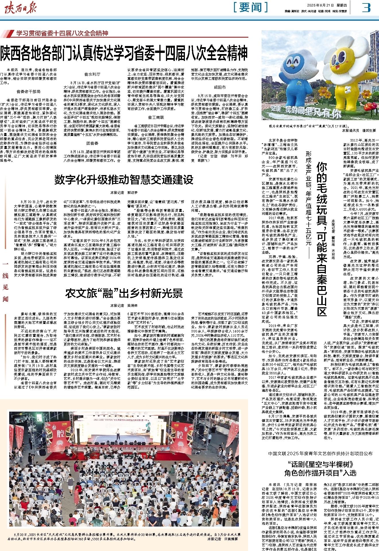 8月15日,咸阳市委召开常委会会议,传达学习省委十四届八次全会精神,研究贯彻落实措施。会议强调,要认真学习贯彻全会精神,打好稳工业、扩投资、促消费“组合拳”,确保“十四五”圆满收官。加快西安—咸阳一体化进程,持续在破除深层次体制机制障碍等方面下功夫。深化文旅融合,坚持创造性转化、创新性发展,着力打造彰显秦文化、秦风韵的文旅带。加强生态环境保护,推进经济社会绿色低碳转型。不断增进民生福祉,全面提升公共服务水平。抓好反馈问题整改,有力有效防风险、保安全、护稳定,努力实现多目标平衡。