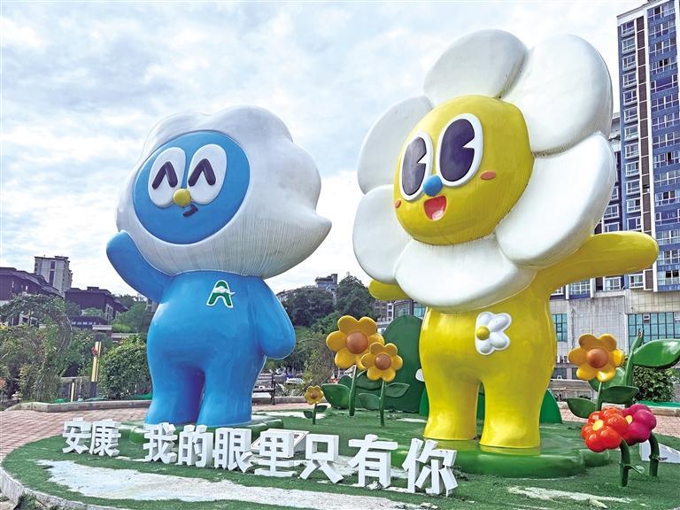 在安康的大街小巷、热门景点、机场车站,随处都能看到两个萌态十足的毛绒玩具形象。作为安康市打造的城市形象IP,以蓝天白云为元素的“安安”和以太阳花为元素的“康康”融合地方文化,推出后“圈粉”无数。