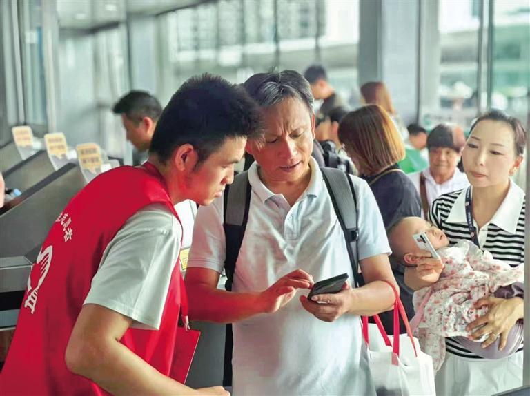 郑思甜笑着对记者说:“我的日常工作不算复杂,包括帮老人找检票口、协助携带大件行李的乘客搬运行李等。虽然只是些细碎的小事,可当旅客对我说谢谢时,我觉得非常快乐。我要用自己的微小力量,温暖他人的旅途。”