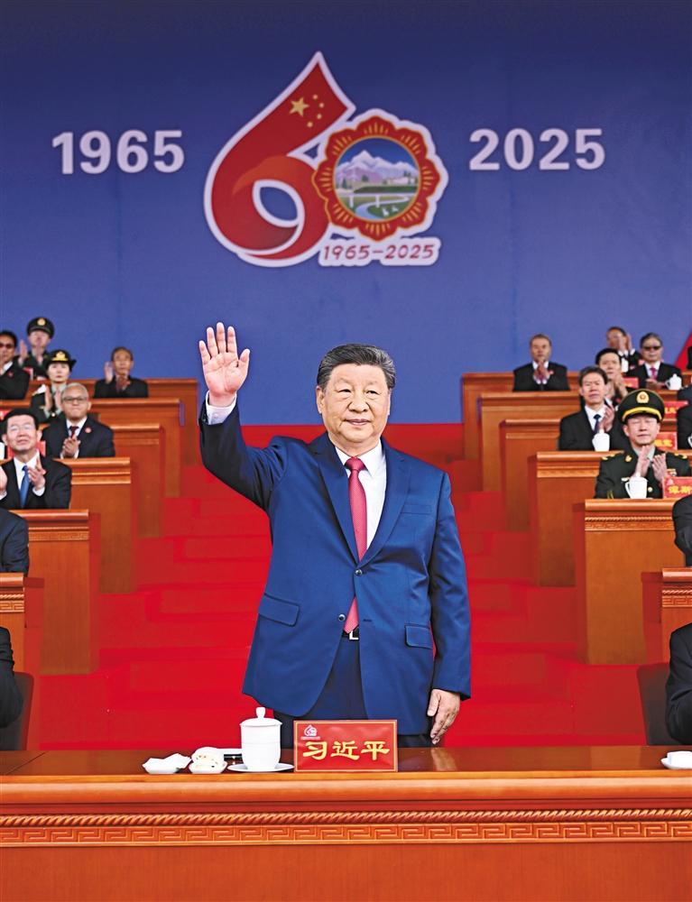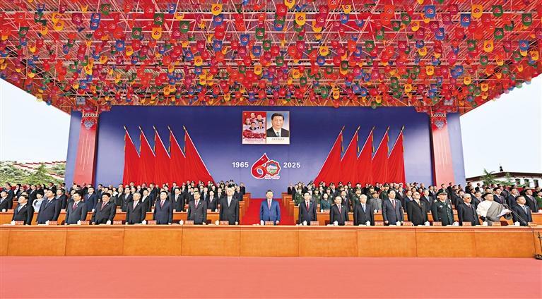 王沪宁发表讲话。他说,1965年9月,在党中央亲切关怀和党的民族政策光辉照耀下,西藏自治区宣告成立。这是西藏发展史上具有划时代意义的大事,巩固了西藏和平解放和民主改革的伟大成果,实现了西藏社会制度的历史性跨越。60年来,西藏经济社会全面发展,民族区域自治制度成功实践,民族团结日益巩固,各族人民生活蒸蒸日上,充分展现了中国共产党领导的坚强力量,充分展现了我国社会主义制度的显著政治优势。