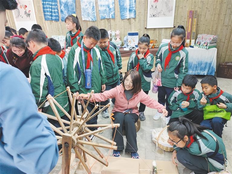图为学生在新庄村木兰摇非遗土布工坊进行研学(资料照片)。 受访者供图