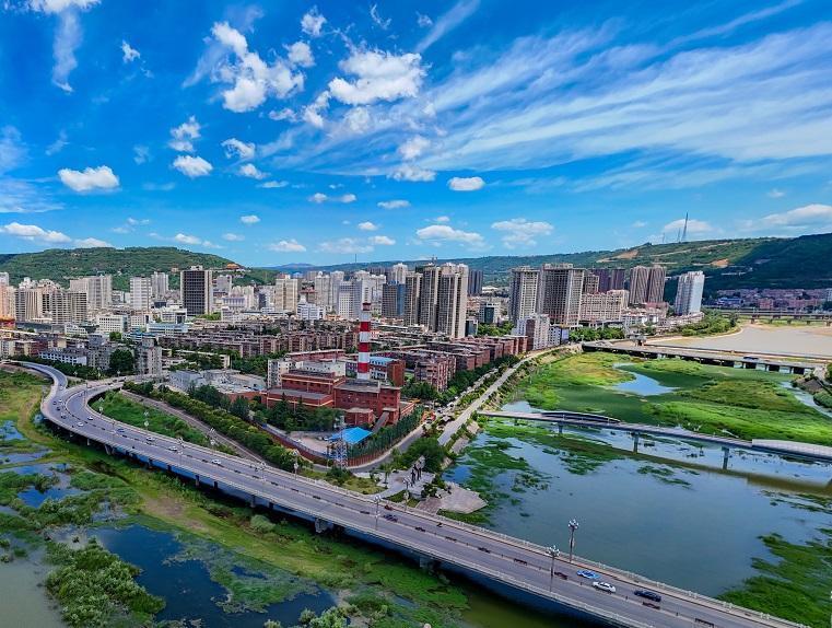 航拍渭河宝鸡城区段(资料照片)。 本报通讯员 谢克强摄