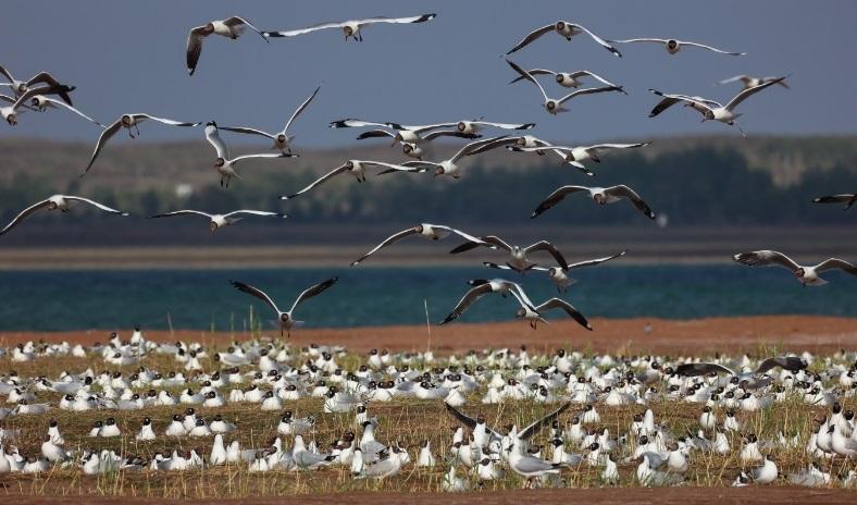 7月18日,成群的遗鸥在陕西红碱淖国家级自然保护区的湖心岛上休憩(资料照片)。 本报通讯员 张帅摄