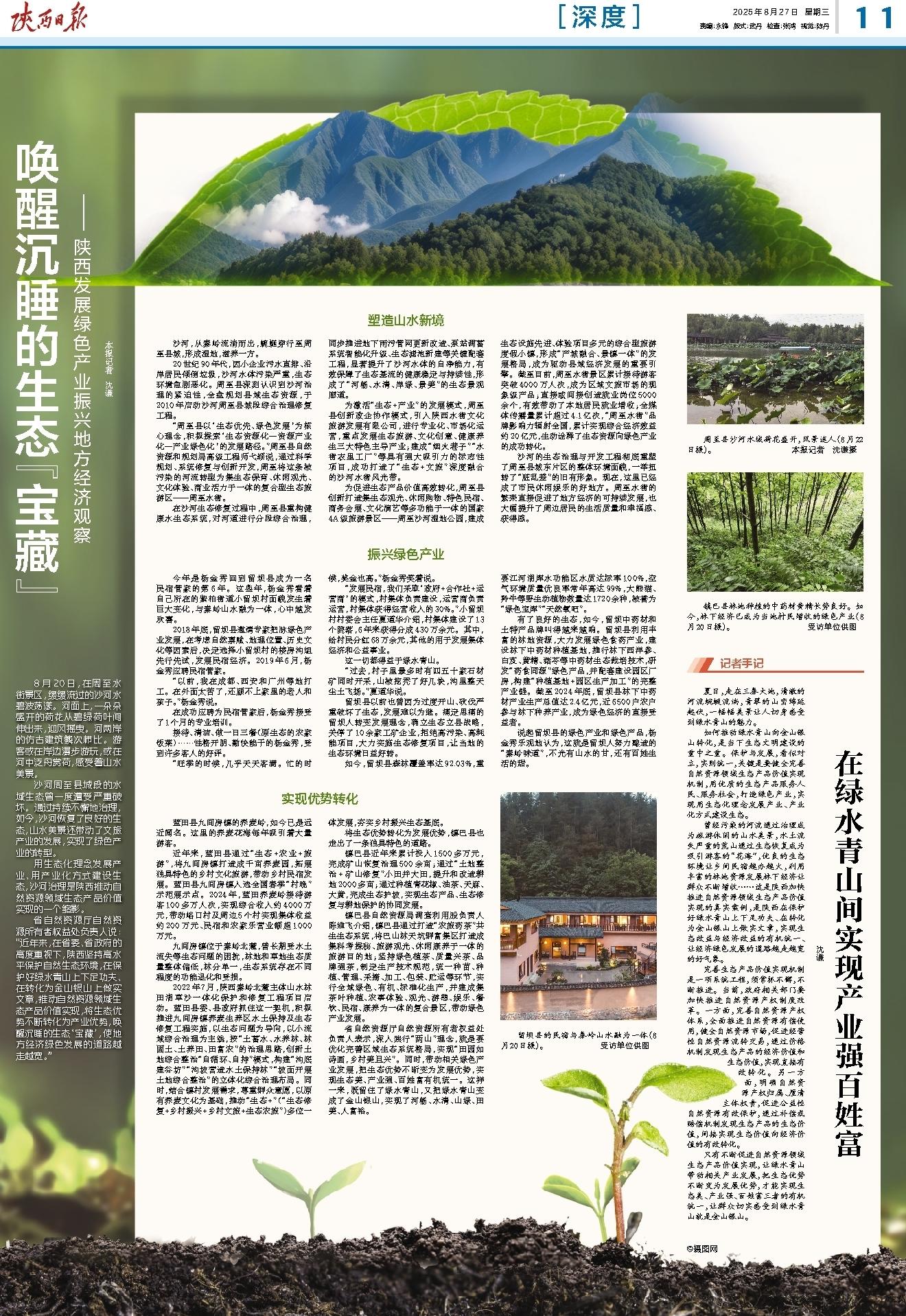 省自然资源厅自然资源所有者权益处负责人说:“近年来,在省委、省政府的高度重视下,陕西坚持高水平保护自然生态环境,在保护好绿水青山上下足功夫、在转化为金山银山上做实文章,推动自然资源领域生态产品价值实现,将生态优势不断转化为产业优势,唤醒沉睡的生态‘宝藏’,使地方经济绿色发展的道路越走越宽。”