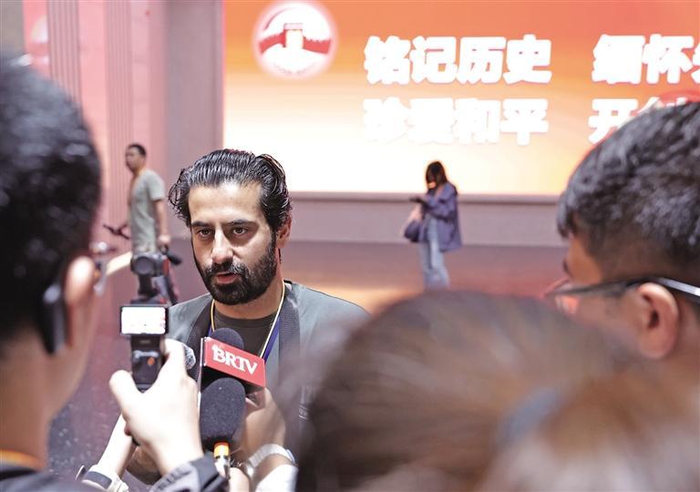 8月27日,一名来自巴基斯坦的记者在活动上接受采访。