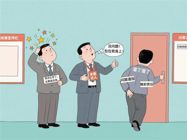 “拍脑瓜”定决策,“拍胸脯”作保证,“拍屁股”甩责任——“三拍干部”的做派,是官僚主义与形式主义的典型写照。这样的作风,浪费的是公共资源,损害的是群众利益,透支的是政府公信力。